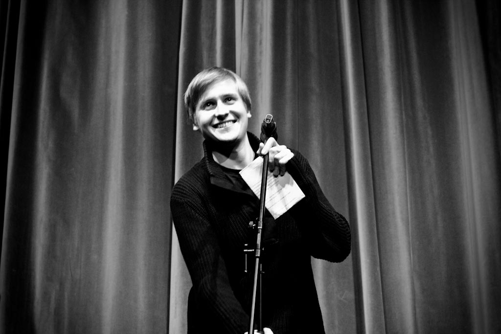 Till Reiners trägt stolz den grünen Pudding. Der Berliner hat am Samstag den ersten Platz beim 15. Bielefelder Kabarettpreis gemacht. Glückwunsch!