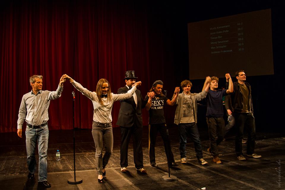 Sven Dressler hat Fotos gemacht vom Tot oder Lebendig Slam. Vielen Dank an Sven für die Fotos und vielen Dank man die Poeten Moritz Neumeyer, Lino Ziegel, Moritz Kienemann und Tilman Birr. Und vielen Dank an die tollen tollen Schauspieler Anne Ratte-Polle, Mex Schlüpfer, Frank Frakowiak und dem Musiker Sir Henry. Siehe Foto!