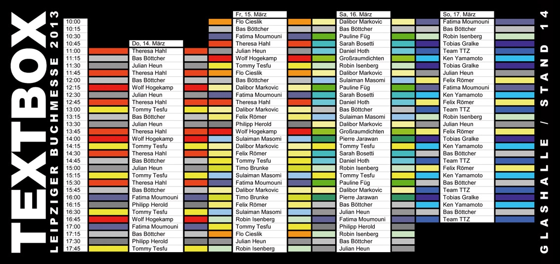 Viele tolle Poeten sind in der Textbox ab Donnerstag auf der Buchmesse Leipzig.