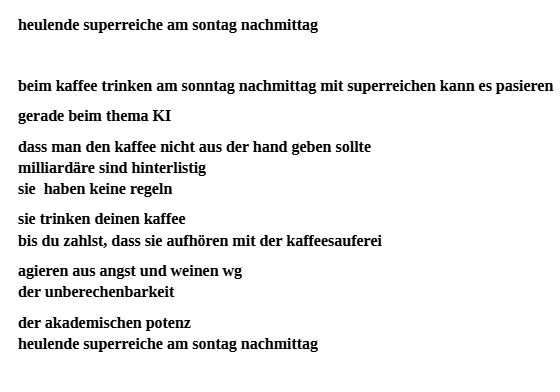 heulende superreiche am sonntag nachmittag